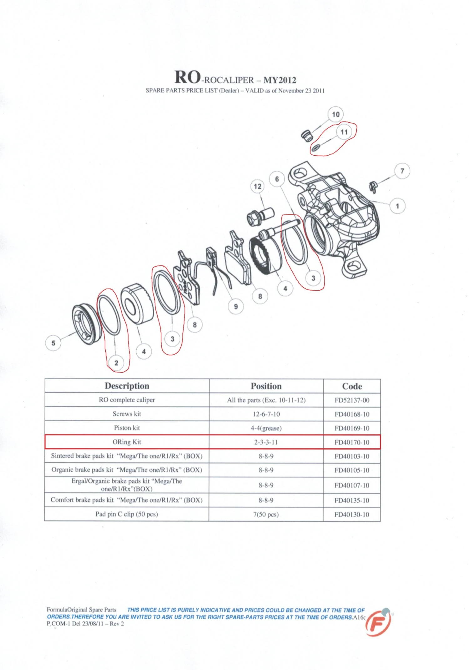 Lieferumfang: 1Stk. O-Ring Kit zu Formula RO Bremssattel