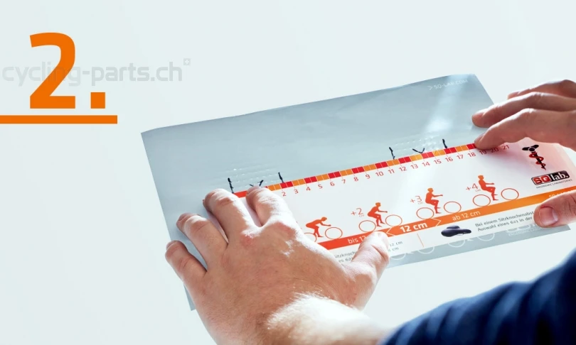 4. Aus den Sätteln auf der Rückseite der beiliegenden Messlehre einen zum individuellen Einsatzbereich passenden Sattel in der richtigen Breite auswählen.